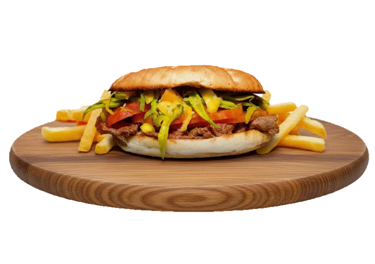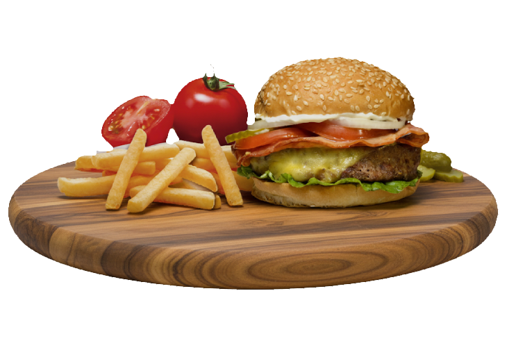 340 gr carne Angus , queso , tocino , lechuga , tomate , cebolla y pepinillos